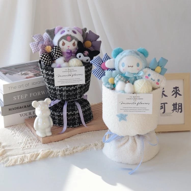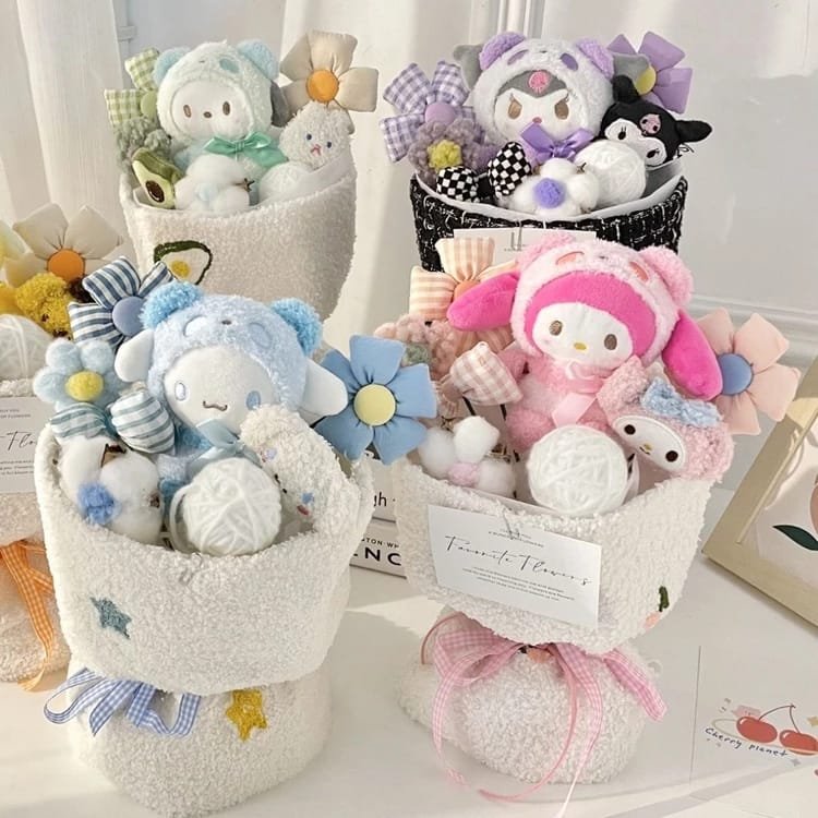 23-22-21/LU3895- RAMO BOUQUET FLORAL «SANRIO Y LOTSO» {32 CM} (1 PZA)