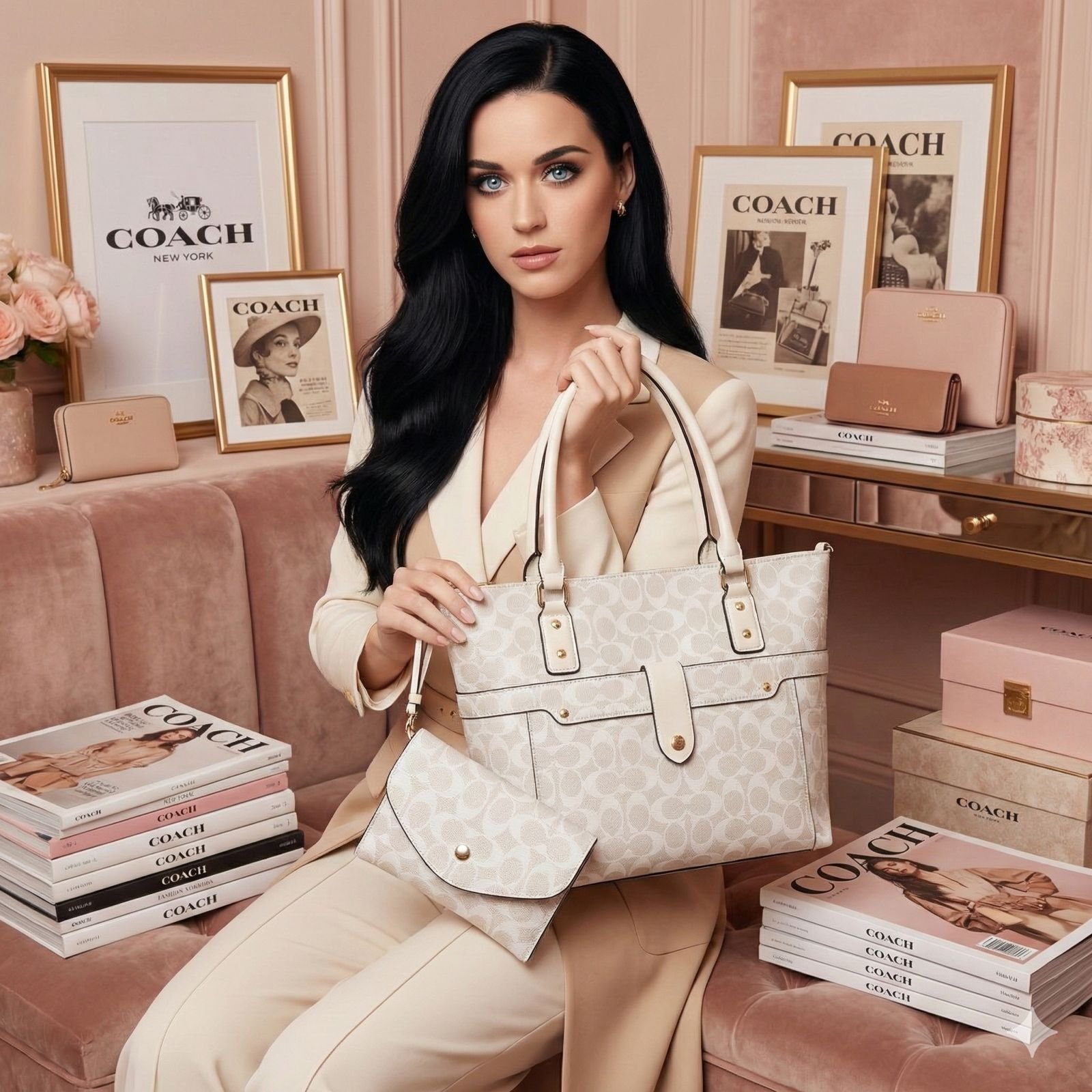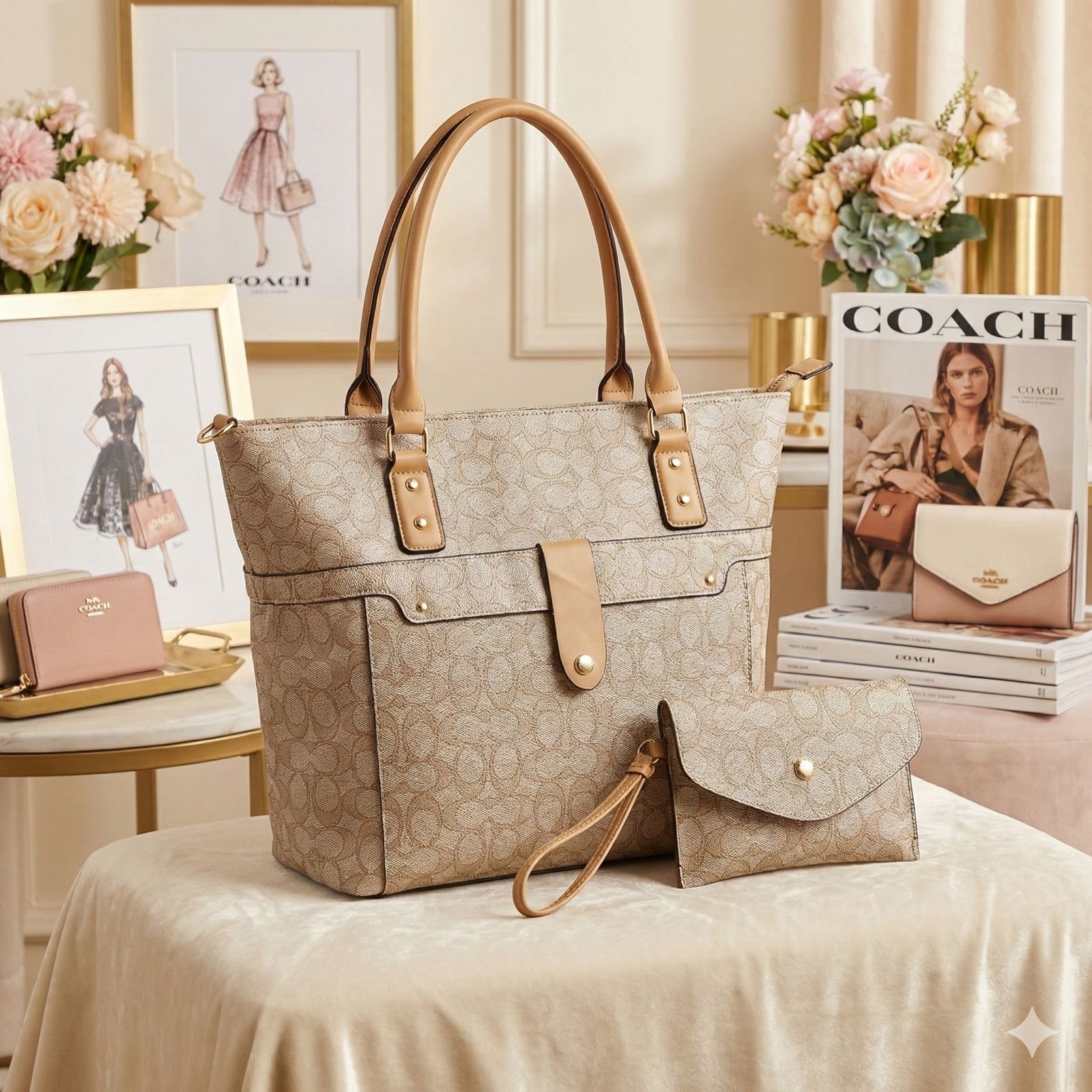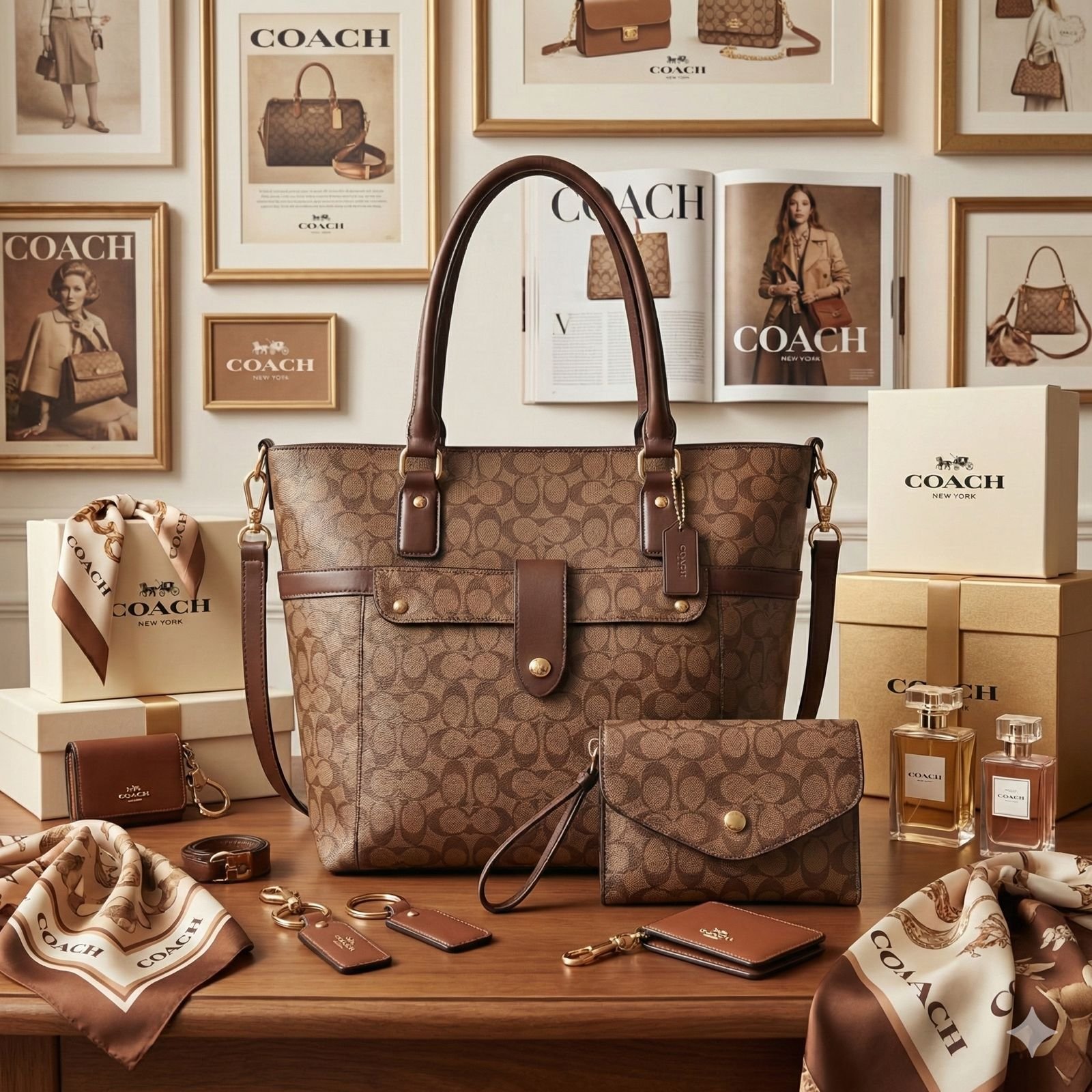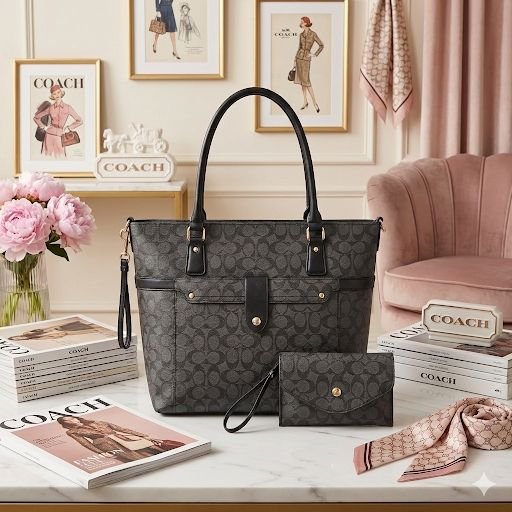 9907 – SET DE CARTERA CON MONEDERO Y TARJETERO x «COACH» CON CAJA DE REGALO (1 SET)
